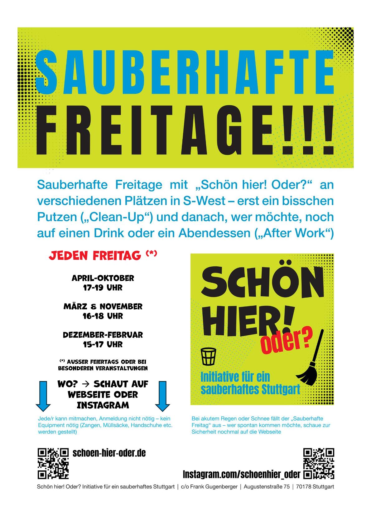 Der Sauberhafte Freitag (jeder Freitag außer an Feiertagen) ist unser Regeltermin.