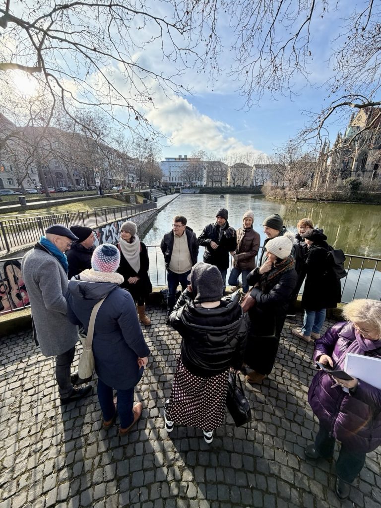Heute hatten die Mitglieder von „Schön hier! Oder?“ die Gelegenheit, an einer Stadtführung im Stuttgarter Westen teilzunehmen. Als Dankeschön an unsere Initiative, hatte Alexander Braun, Ruheständler, Verleger und selbständiger Stadt- bzw. Reiseführer, uns zu einer kostenlosen, mehrstündigen Tour durch den Stuttgarter Westen und speziell zur Industrie- und Baugeschichte eingeladen. Herr Braun konnte mit sehr detailreichem Wissen und interessanten Anekdoten die Zuhörerschaft begeistern. Wusstet Ihr, dass weltbekannte Firmen wie Bosch und BASF aus zunächst kleinen Betrieben bzw. Manufakturen im Stuttgarter Westen entstanden sind? Oder Stuttgart einst eine der bedeutendsten Städte für die Herstellung von Schokolade war, u.a. mit der Firma Waldbaur am Feuersee. Oder wisst Ihr, was der „Bauwich“ ist und warum er für die Gründerzeit-Häuser, die z.B. zahlreich in der Augustenstraße stehen, von Bedeutung ist?