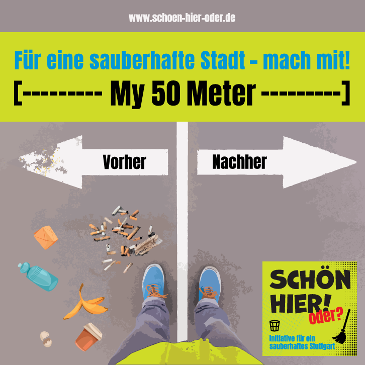 In der Karte weiter unten kannst Du Dir anschauen, wo sich schon jemand an der Aktion My 50 Meter beteiligt. Einfach auf einen der Marker klicken. Unser Ziel ist es, möglichst viele Bereiche in Stuttgart-West abzudecken. Wenn Du Dich beteiligen willst, kontaktiere uns per email oder komm zum Sauberhaften Freitag!